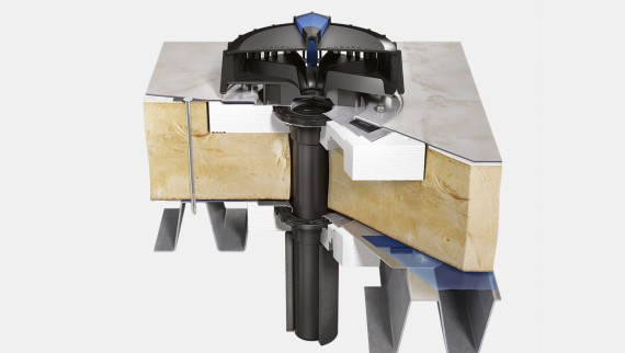 Geberit Pluvia는 사이펀(음압) 현상을 발생시켜 빠른 속도로 배수되는 시스템입니다.